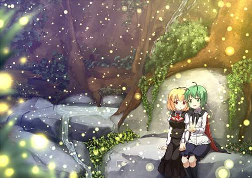 这一对笨蛋还蛮有意思的,两个人的能力有点异曲同工之妙。露米娅是放出黑暗使人失去视力;米斯蒂娅则是放声歌唱来使人夜盲。也就是说,一个是让人看不见眼前,一个则是让人看不见远处。两人在神社参加祭典的时候,偶尔可以在背景看到她们在一起的画面,看来关系还不错呢。