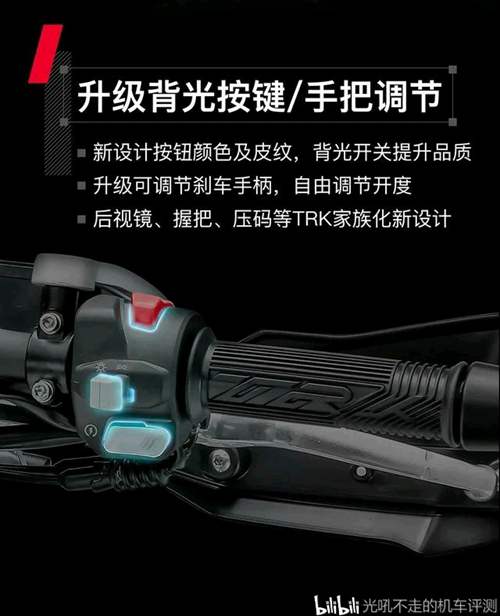 贝纳利以及钱江的近期新车型,大部分都有了按键背光灯,虽然是一个小设计,但是实用性真的非常高。同样在新款金鹏也配备了按键背光功能。