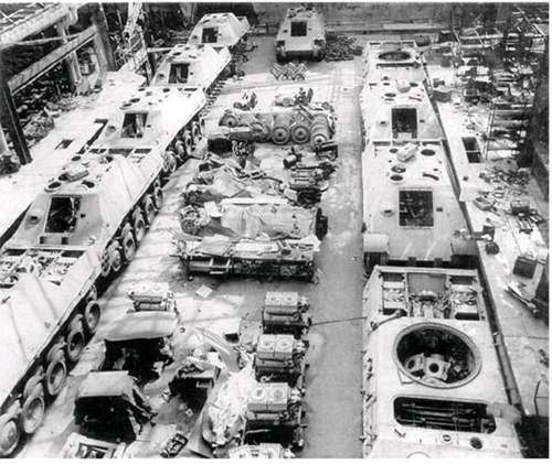 这年深秋,MIAG的总经理布莱切博士在一份总结材料中写道:“如果说1943年的坦克生产并未受到敌人空袭的太大影响,那么1944年所有的坦克工厂可以说都受到了空袭直接而严重的影响,空袭下的交通线无法正常运送生产原料,这是贯穿全年的一个大麻烦,又尤以最后四个月为然。MIAG从2月到10月承受了10次大规模空袭,厂区建筑损毁60%以上,工厂所在的不伦瑞克城区的状况只能用‘悲惨两字来形容,那里的人口从28万减到了10.6万。尽管如此,我们的月均产量仍维持在112辆突击炮和15辆‘猎豹的水平上。”