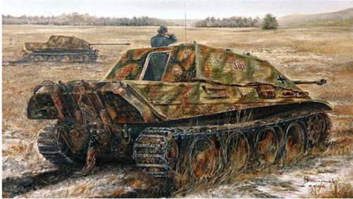 事实证明行动装置确实是“猎豹”的一个弱点,不过这场代格之战却是“猎豹”的胜利:第560营的另外几辆“猎豹”此后合力进击,击毁了十几辆SU-100,并把另外几辆苏军自行火炮驱退到代格城外去了。
