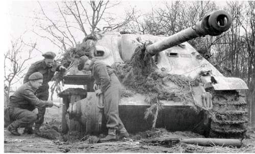 可是,第563营到1月底时已经基本丧失了战斗力,这又是怎么一回事呢?原来这个营还存在有如下的损失:8辆“猎豹”和4辆IV号驱逐坦克因为缺油而放弃,1辆“猎豹”和8辆IV号驱逐坦克陷入泥沼无法救回,3辆“猎豹”和5辆IV号驱逐坦克缺乏备用部件而被车组毁弃。原来,非战斗损失拖垮了这个重驱逐坦克营。