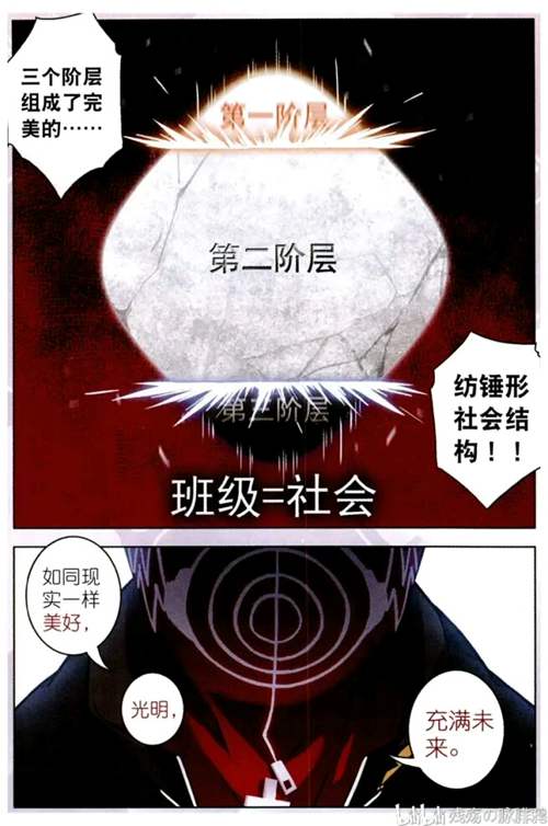 “逆游戏”的诞生领导了一场无阶级的变革,因为在怪物,职业,道具等超越现实的变化中,死亡不在遥不可及,而那些第一阶级,必定会受到来自低阶级的威胁,第三阶级中有帽子存在,所以这应该是帽子领导的红色革命(滑稽)。从前五话的内容里,可以看出教师在游戏中应该是作为怪物出场的,所以说。。。。难道校长是最终boss?。而学生则作为可专职的“村民”在游戏中存在。