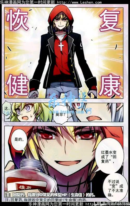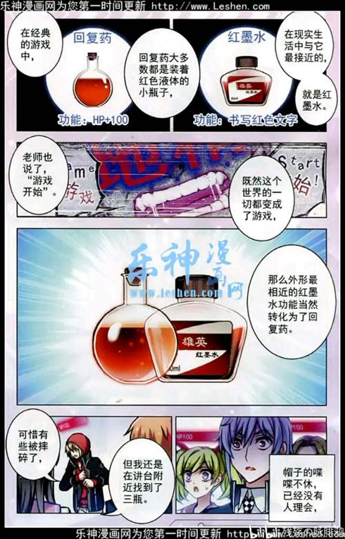 漫画中,game start后现实就变为了游戏,之前说的帽子天秀演技就依赖于此。帽子先是硬接了地精一枪,让女体委相信自己后,磕药回血。不过,在我知道血药的真实身份后也是吓了一大跳。。红墨水能补血你敢信(҂⌣̀_⌣́)?