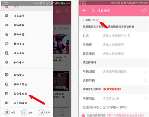 1)首先就是在微信公众号或者B站客户端(以下是安卓)左划下面的免流量服务申请,选择你的需要的套餐,填写个人相关资料提交,提交成功后就等待快递的到来了。