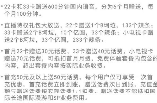 入手和使用这张卡快1个月了,感觉很好吧。22元的卡,1G全国流量,而且首月就送30元(相当于首月免费使用),然后首冲就送50元话费,总结起来就是只充了50块,得到一张130元的电话卡,还是十分划算的,至少比我的移动便宜(MD,38块就只有300M全国--用完就送724省内,2G省内闲时,送12个月就没有了。)