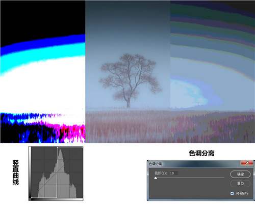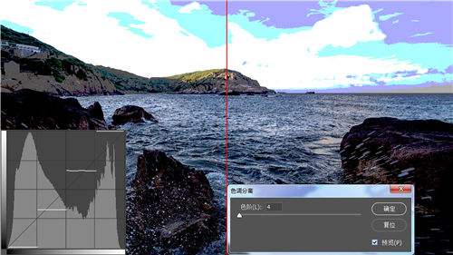 色调分离的效果可以由曲线RGB复合通道中的竖直线和水平线实现,用不多的颜色显示整张片子,会丢失大量色阶信息,用得并不多。