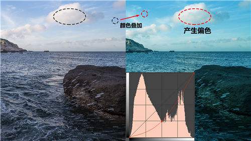 曲线调色并不是对画面原有颜色进行调整,而是整体添加偏色。没有颜色的灰度区域经过曲线调整也会产生偏色,无中生有;而有颜色的区域会跟添加的偏色进行叠加,产生新的颜色。