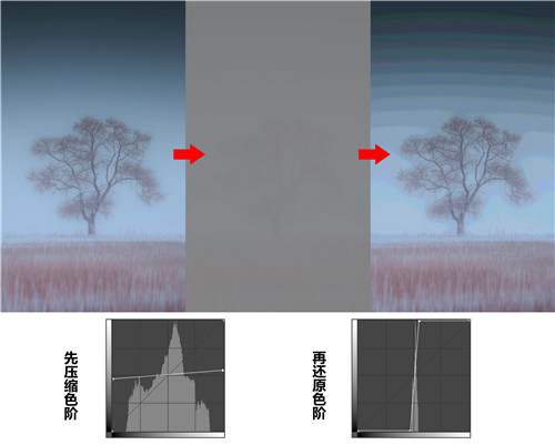 以目前Raw格式照片的高宽容度,前期拍摄基本不会出现色彩断层,一旦进入PS后期处理,如果处理过度,原本平滑的渐变很容易出现色彩断层,类似竖直曲线和色调分离的效果。