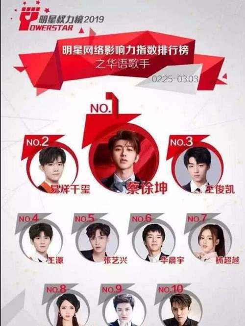 记忆里第一次听到蔡徐坤这三个字,应该是2个月前在QQ上看到的一张2019年华语乐坛的排名表