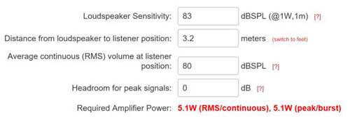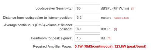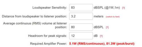 但我印象中实测好像只有83dB,我记不太清了,就按照83dB计算。这里放一个比较方便计算音箱功率的网址: