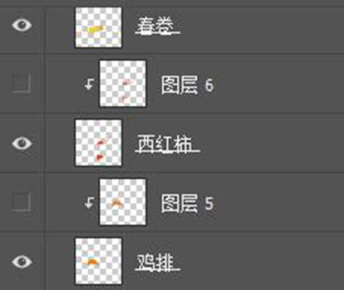 每个食物都单独分了一个层,单独命名。