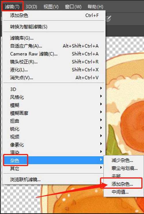 在滤镜-杂色-添加杂色