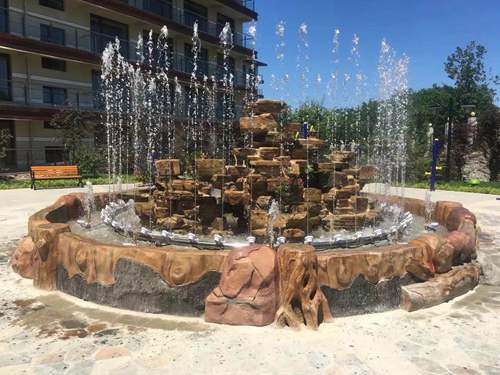 流水瀑布水池可以说也是不可少的,一般是使用鹅卵石作为基石,将水池的大致外观建造出来,然后使用水泥将其相互固定敷面,等到水泥干透后再利用防水剂和一些防水效果好的胶对水池进行一些防水处理水池就算是成功建造了。