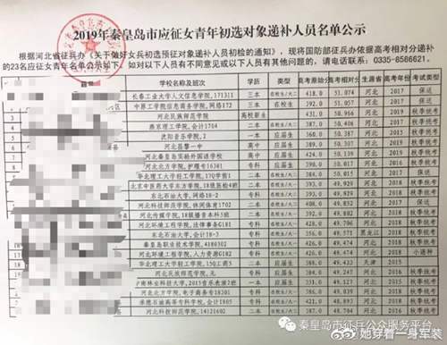 自从我开始做女兵征集资讯分享以来,每年排名审核结束都会有大把没有通过审核的女同学来找我,说在微博遇到的女孩高考分数还没有自己高就通过了初选,而自己却没有通过。