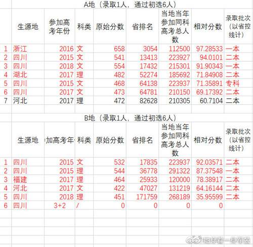 不同生源地就更不用说了。