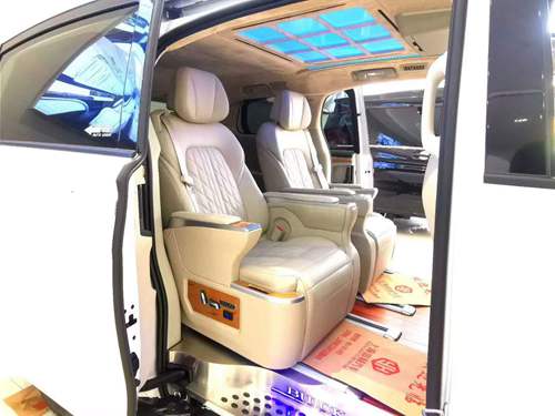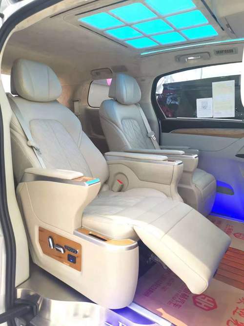 二排定制成航空座椅,具有前后两向电动,椅背角度两向电动、腰托四向电动、腿托两向电动共计10向调节功能,提供了丰富的坐姿选择;更是配备了加热、通风、按摩及航空头枕,侧面配有USB充电口和手机无线充电、手机放置槽,为乘员带来媲美飞机头等舱的尊享体验。顶部采用九宫格吸顶灯,还拥有分段式电动天窗,底部更是采用了游艇木地板,更大大的提升了这款车的高端气息;