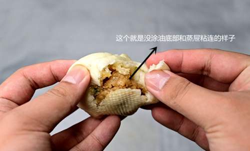 9、在蒸屉上最好抹一点点油或撒一点点粉,这样可以防止包子皮底部和蒸屉黏连。