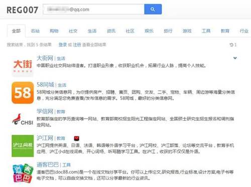 能搜出这个号码的所有人注册过什么奇奇怪怪的网站