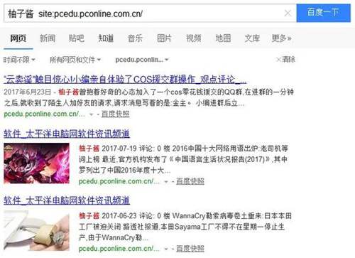 如果你想起你曾经在某些社交平台比较活跃,想删除那些黑历史怎么办?有时候也许不必回去一条条翻找,可以大概地查看下百度是否收录该信息。在百度site一下你想搜索的网站,以柚子酱自身为例,在百度:昵称+site+域名,能看到我在这个网站里面,发布过哪些页面。对百度都收录了哪些关于自己信息有兴趣的网友,不妨手动查找看看,也许又有什么令人惊喜的发现。