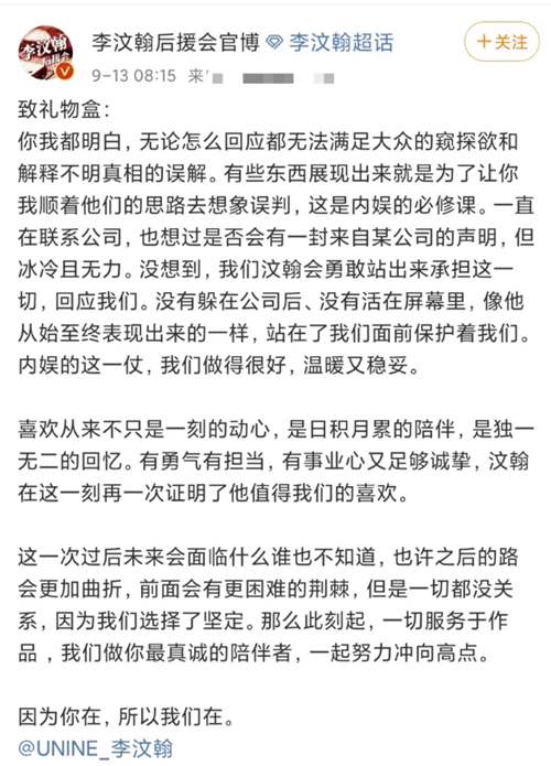 李汶翰微博回应与易易紫绯闻,网友 算什么男人?