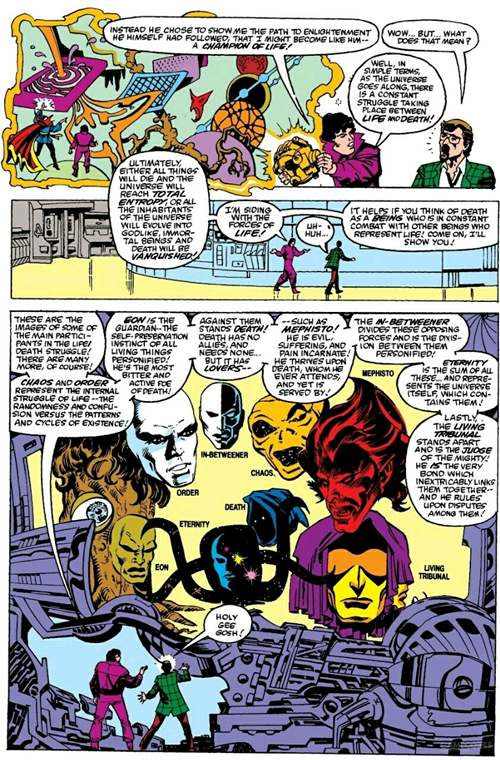 奇异博士说,在漫威宇宙中,除了低等级的感官生物,还存在着强大的概念化神明,随着宇宙的发展,这些神明分成了两派,进行着永不停歇的竞争。