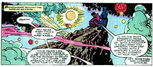 但是爱慕着死亡的墨菲斯托带着恶魔大军前来阻止,却被超越者击退。然后永恒与生命法庭等人也现身,希望能说服超越者放弃这一动摇宇宙根基的举动。