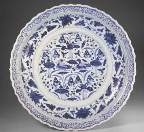 图四:元景德镇窑青花鸳鸯荷花(“满池娇”)纹花口盘 故宫博物院藏