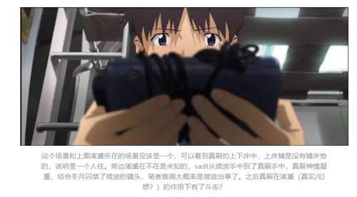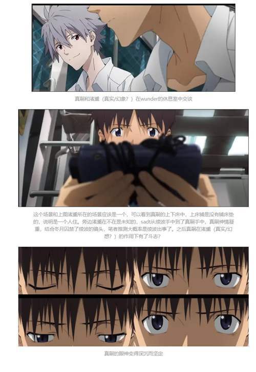 根据编号,54的时候,三人还在行走,而编号109,真嗣已经回到船上,对着绫波留下的随身听凝视。推测三人行的剧情会直到1/5~1/4的剧情节点。如果按之前很多人推测的,绫波丽在三人行过程中觉醒了部分情感,似乎篇幅的确够用。这个表情实在是很耐人寻味。
