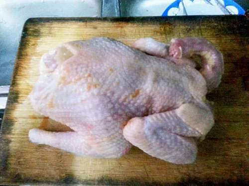 6.的新鲜鸡肉在购买后会被冷冻三个小时。自然解冻后,它们被清洗干净,鸡脖子上的皮肤被撕掉。这部分细菌比较多,不需要放弃鸡肉上多余的油,这样鸡汤就可以煮得更清爽。