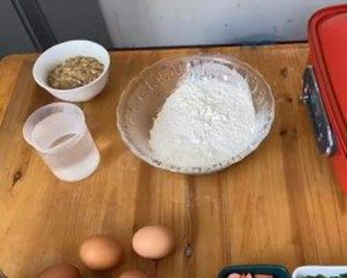 面粉215克、水350克、鸡蛋6个、火腿肠1根(可不放)、香葱适量(可不放)、剩的饺子馅适量、盐3克、泡打粉1克、孜然粉1小勺、花椒粉1小勺、黑胡椒粉1小勺、肥瘦相间猪肉200克、蚝油1勺、酱油1勺、香菇、胡萝卜、芹菜适量