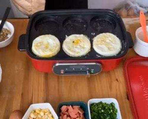 8、重复步骤3,4。做好新一轮鸡蛋汉堡。