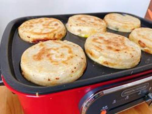 9、把之前做好的3个放入锅中,煎至两面金黄即可。