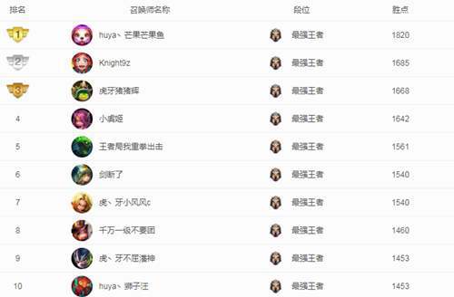 峡谷之巅前十被霸榜 十位大神九位来自虎牙,第一仍是芒果鱼