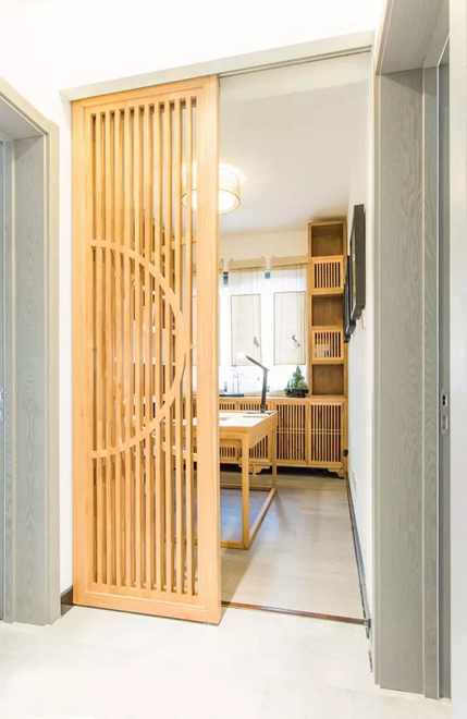 推拉门隔断应该是用的比较多的一种隔断方法,隔而不断,拉开关闭都很随心,隔断效果也不错。