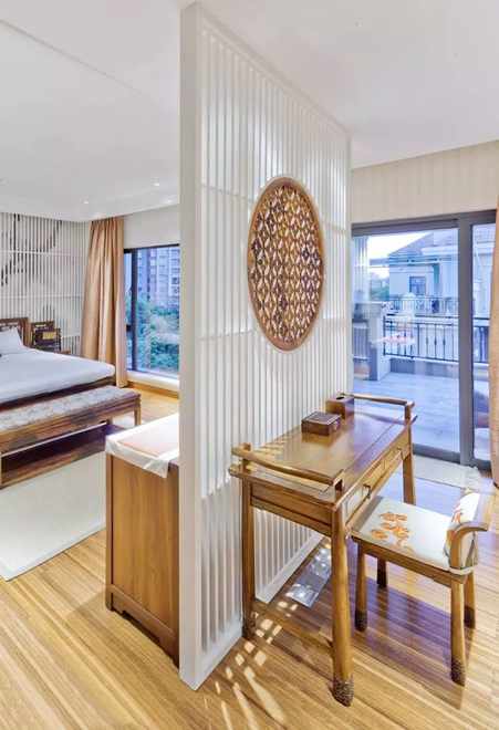 如果不喜欢摆个诺大的柜子,或者空间有限,那么就可以考虑放个小屏风隔一隔空间,貌美的屏风隔断绝对能为你的空间增添不少姿色 ~