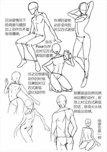 不论是站姿还是坐姿,我们都应当注意人物的重心,否则就会让我们的作品显得很不自然!