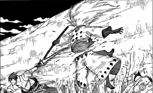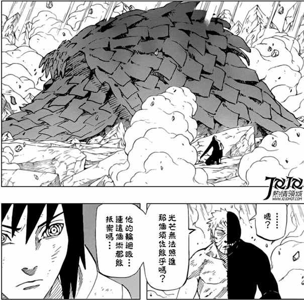 然而三大瞳术集于一身的辉夜被六道鸣人一个瞬身扯断了一只手之前都没有看清楚六道鸣人的动作。六道斑吸收了神树获得了不死之身。