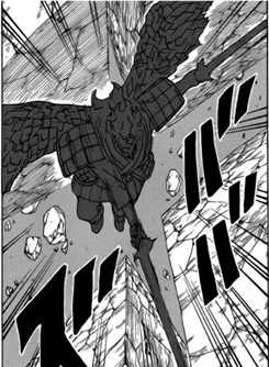 六道鸣人一拳打在六道斑的六道之杖上面神树就剧烈晃动起来
