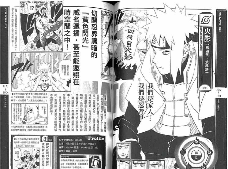 因其招牌忍术“飞雷神”而被誉为【黄色闪光】,号称忍界第一神速。