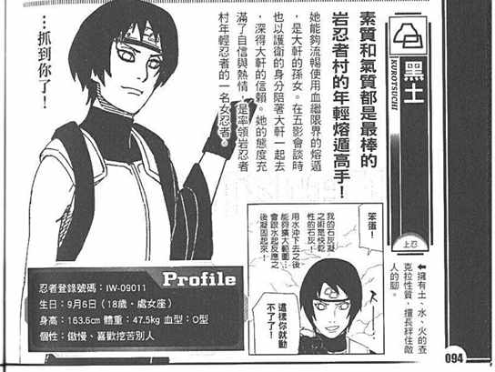 拥有血继淘汰尘遁,并可飞行作战,外加一流的土遁系忍术。