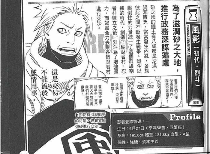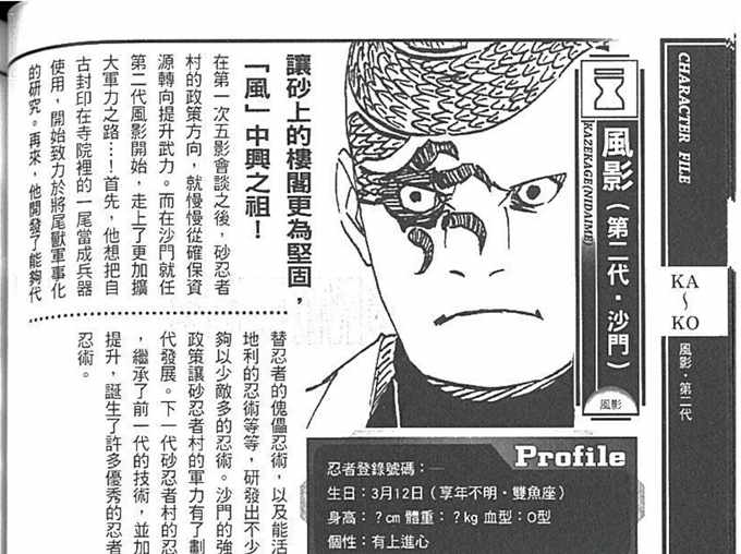 其在位时间是历代土影中最长的,最长寿的土影,曾引领村子走向全盛时期。