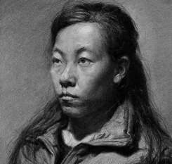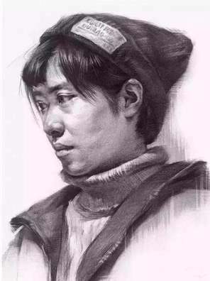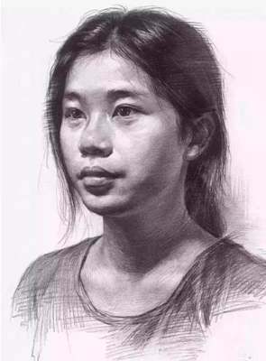 头发的表现确实有一些难度,它不像面部那样具有明显的结构,也不像五官那样迥异不同的细节,乌黑蓬松的头发附着在人的头部,使大家分辨不出哪是应该刻画的重点。但是头发在头部占的面积很大,并涉及到人像很大一段轮廓。头发又是反映人物性格的一个重要方面,所以应该重视对头发的表现。