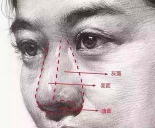 明暗交界线的分析:明暗交界线一般是从对象的头顶到衣服,途经脸部颧弓部位。刻画明暗交界线时应该忽略“线”的概念,以“面”的概念分析各个部位的层次和明暗虚实变化,并且在多条交界线中间部分要塑造得自然、圆润、透气。