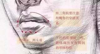 嘴部肌肉丰满、细腻并且变化微妙,想要表现出此种效果需要手法细腻,且点到为止。不能担心体感不强烈而过分强调肌肉的块面感,从而使画面僵硬。嘴巴的形体和质感表现得非常充分,上下唇的空间关系有着微妙的变化,口线的刻画虚实到位,唇突较实,嘴角处理含蓄,很好地体现了嘴部圆柱体的形体特征。