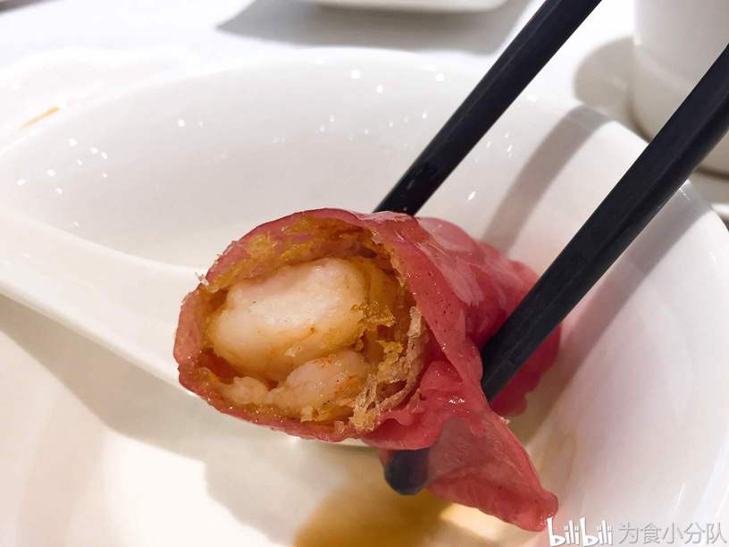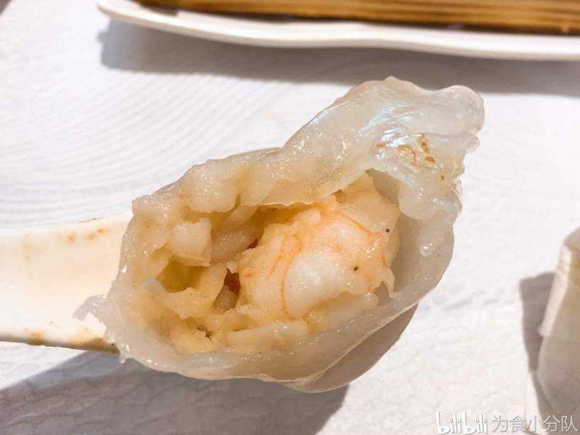 广州酒家的虾饺皇,皮真的非常的薄,基本上可以看到里面馅料了,虽然褶皱层次不多,但已经是不错的了。入口感觉非常的不错,虾仁够大够新鲜,非常的爽口,而且馅料搭配的非常的好,所以五个人都给这里的虾饺皇打个四星好评!