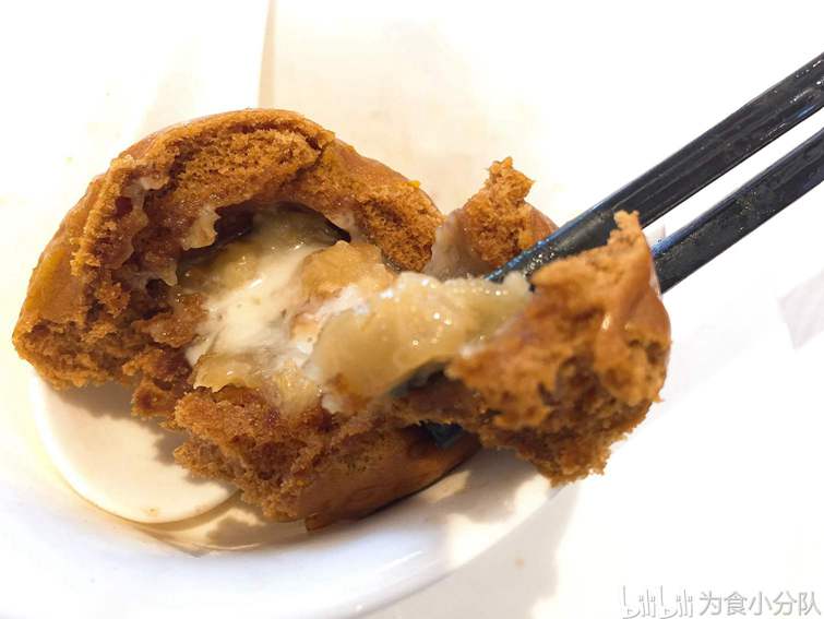首先是先熬红糖水,熬成浓稠的红糖水晾凉再加入面团,混合揉成团。然后再把细砂糖、芝士和核桃仁一起加入融化后黄油中拌均匀形成的馅再放进去,外形也像核桃。入口咬下去除了感受到里面的核桃仁外,还感受到里面的热芝士,,口感还不错。所有成员均给出四星!