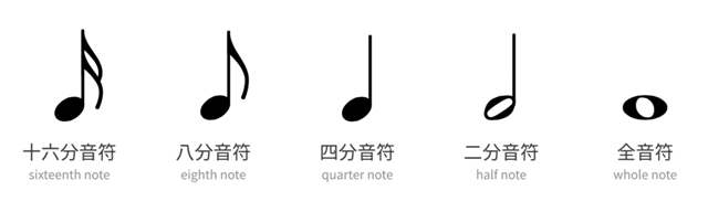 (2)四分音符:乐理中为了方便记谱,设定了一系列具有相对时间关系的音符。四分音符时间为全音符的四分之一。顾名思义,八分音符时间是四分音符的一半,二分音符则是四分音符的两倍。若音符带了一个“附点”,则表示时间乘1.5倍。
