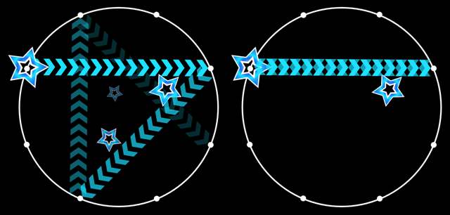 虽说换手没有定论,但是有定式:存在不少引导你换手的slide形式,并且特征明显,需要多打、多内化,吸收足够多换手谱面的构成之后,你会发现初见就能换成功是可行的。对于足够慢的星星,直接靠反应力就行;对于快一点的星星,笔者总结了几个定式,仅供参考: