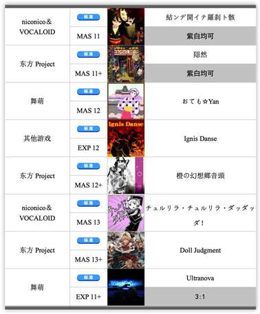 2021-6-13 将歌曲分类和等级更新至与国服舞萌DX2021一致,大幅优化推荐歌曲列表的美工
