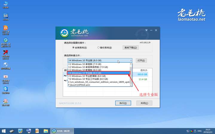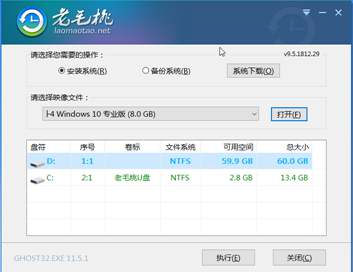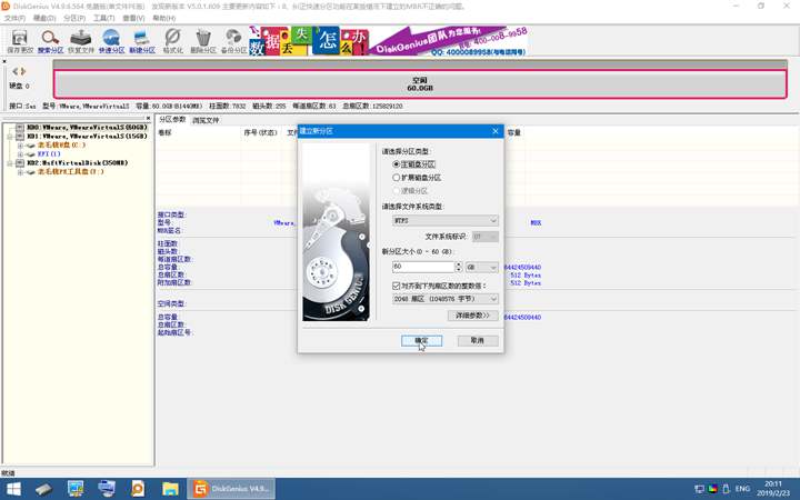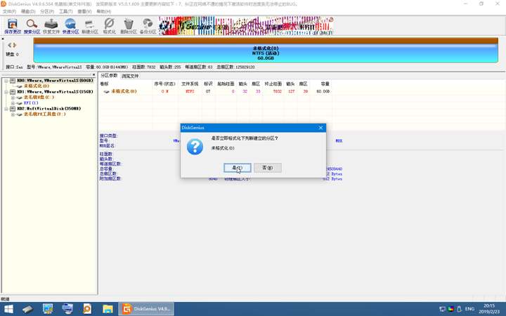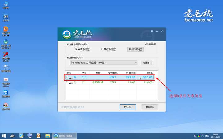 选择这个60.0GB的磁盘作为系统盘,点击执行